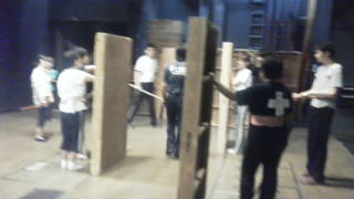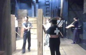 胴切りの練習でした。歩きながら、左右の平台を人に見立てて切っていきます。